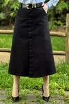 Os detalhes desta saia são um destaque especial. Possui bolsos faca na frente não apenas acrescentam um toque prático à peça, mas também oferecem um elemento de estilo casual e descontraído. E para trás, um bolso que completa o design funcional da saia, mantendo o equilíbrio entre utilidade e estética. A cor preta confere um ar de elegância à saia, tornando-a uma escolha versátil para várias ocasiões. É confeccionada no Jeans com elastano. Você pode combiná-la com uma blusa estampada para um visual mais descontraído ou com uma camisa branca para um toque mais sofisticado. Essa saia é a tela em branco perfeita para expressar o seu estilo pessoal. Seja para um passeio no shopping, um almoço casual ou um encontro com amigos, a Saia Jeans Preta com Elastano é uma escolha que une moda e conforto. Vista-se com confiança e destaque-se com um visual que valoriza o clássico, com um toque moderno e prático."